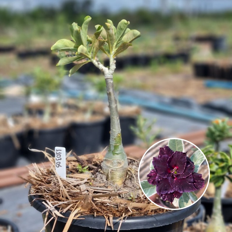 Muda Baobá Baby com caudex em formação do adenium rosa do deserto cultivar Ceu Estrelado Variegata, perfeita para colecionadores apaixonados!