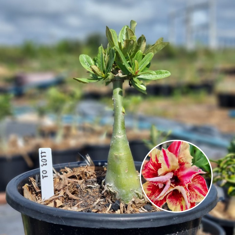 Muda Baobá Baby com caudex em formação do adenium rosa do deserto cultivar Heat Fire, perfeita para colecionadores apaixonados!