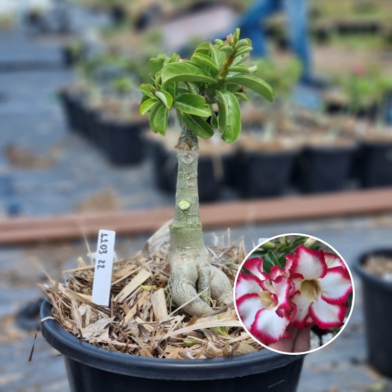 Muda Baobá Baby com caudex em formação do adenium rosa do deserto cultivar Star Style, perfeita para colecionadores apaixonados!