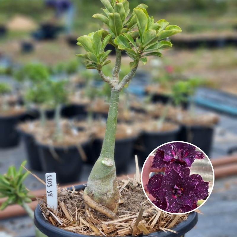 Muda Baobá Baby com caudex em formação do adenium rosa do deserto cultivar Céu Estrelado, perfeita para colecionadores apaixonados!