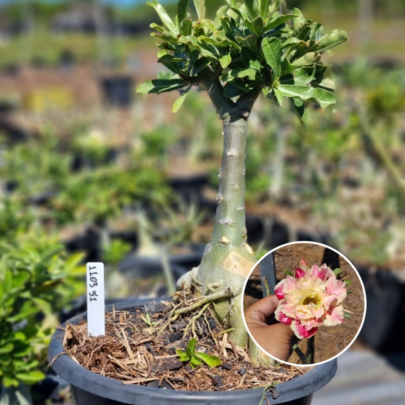 Muda Baobá Baby com caudex em formação do adenium rosa do deserto cultivar Buttercup, perfeita para colecionadores apaixonados!