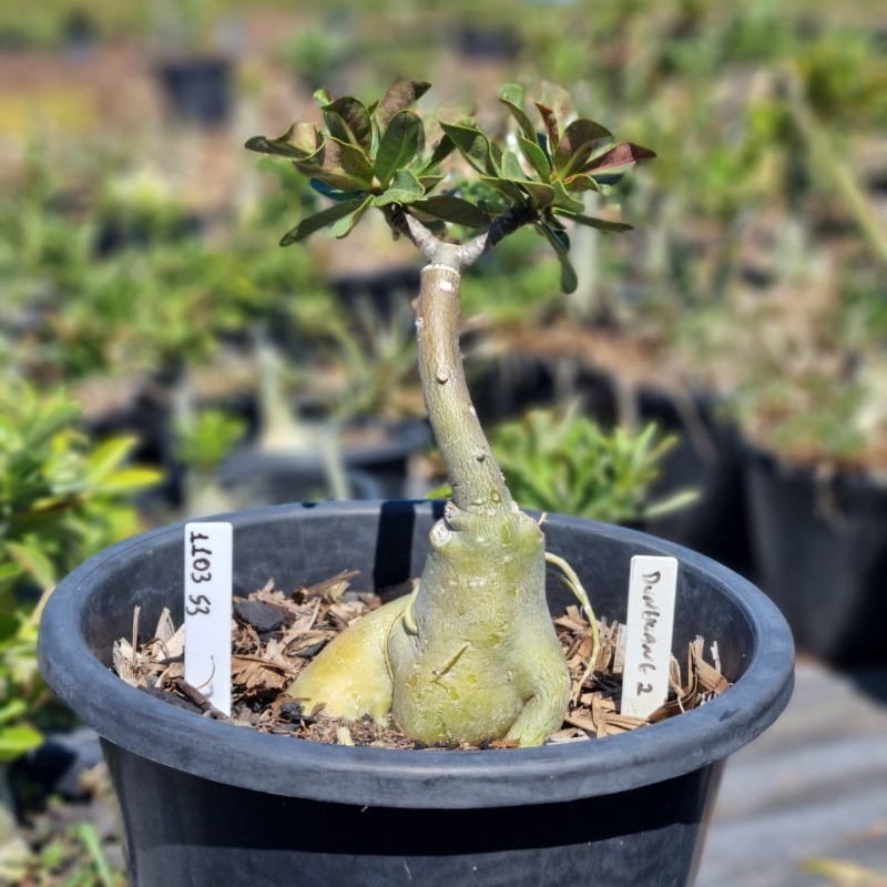Muda Baobá Baby com caudex em formação do adenium rosa do deserto cultivar Double Star, perfeita para colecionadores apaixonados!