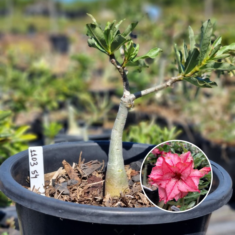 Muda Baobá Baby com caudex em formação do adenium rosa do deserto cultivar Liberty, perfeita para colecionadores apaixonados!