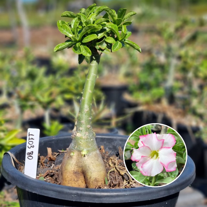 Muda Baobá Baby com caudex em formação do adenium rosa do deserto cultivar Bridal Buquê, perfeita para colecionadores apaixonados!