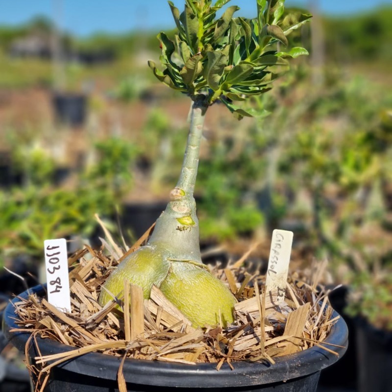 Muda Baobá Baby com caudex em formação do adenium rosa do deserto cultivar Colossal, perfeita para colecionadores apaixonados!