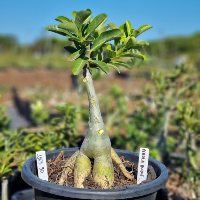 Muda Baobá Baby com caudex em formação do adenium rosa do deserto cultivar Pérola Buquê, perfeita para colecionadores apaixonados!