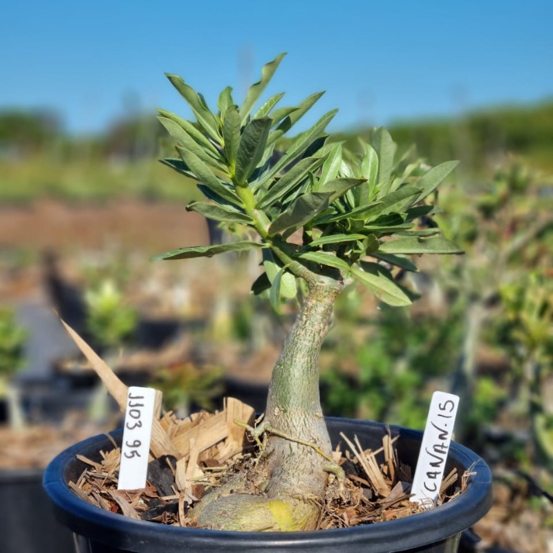 Muda Baobá Baby com caudex em formação do adenium rosa do deserto cultivar Canan 135, perfeita para colecionadores apaixonados!