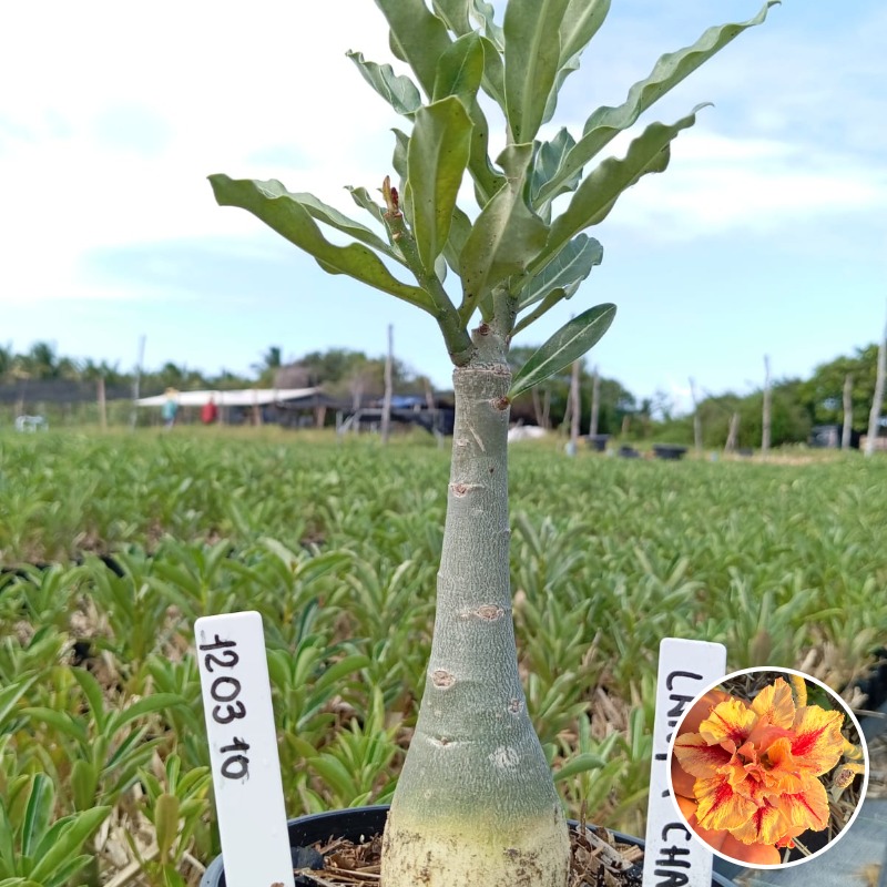 Muda Baobá Baby com caudex em formação do adenium rosa do deserto cultivar Lança Chamas, perfeita para colecionadores apaixonados!
