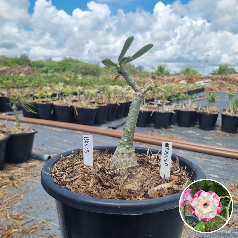 Muda Baobá Baby com caudex em formação do adenium rosa do deserto cultivar Artemisia, perfeita para colecionadores apaixonados!