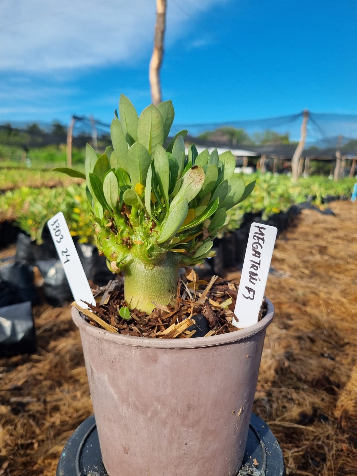 Adenium arabicum F3 cultivar MEGATRU F3 — semente selecionada, rosa do deserto com caudex imponente para colecionadores.
