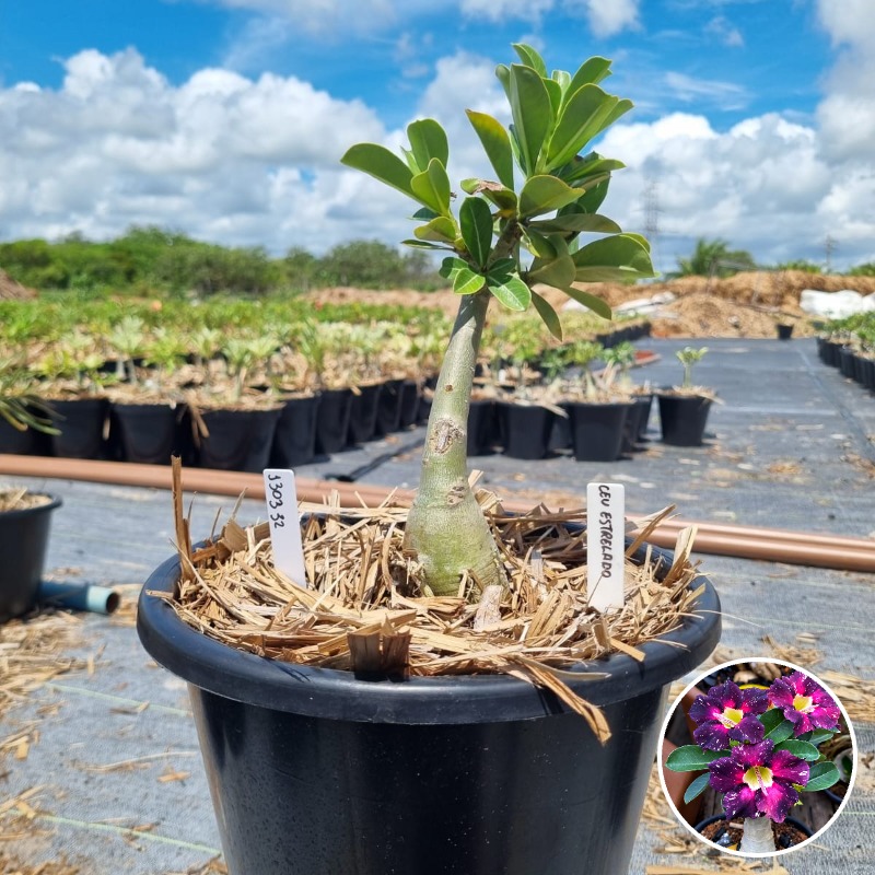 Muda Baobá Baby com caudex em formação do adenium rosa do deserto cultivar Céu Estrelado, perfeita para colecionadores apaixonados!