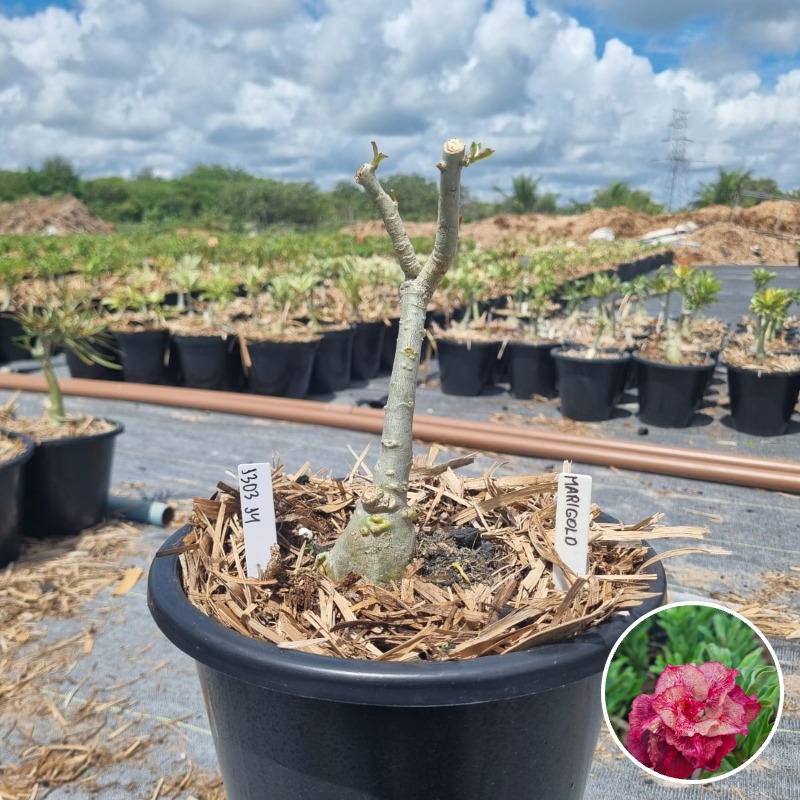 Muda Baobá Baby com caudex em formação do adenium rosa do deserto cultivar Marigold, perfeita para colecionadores apaixonados!