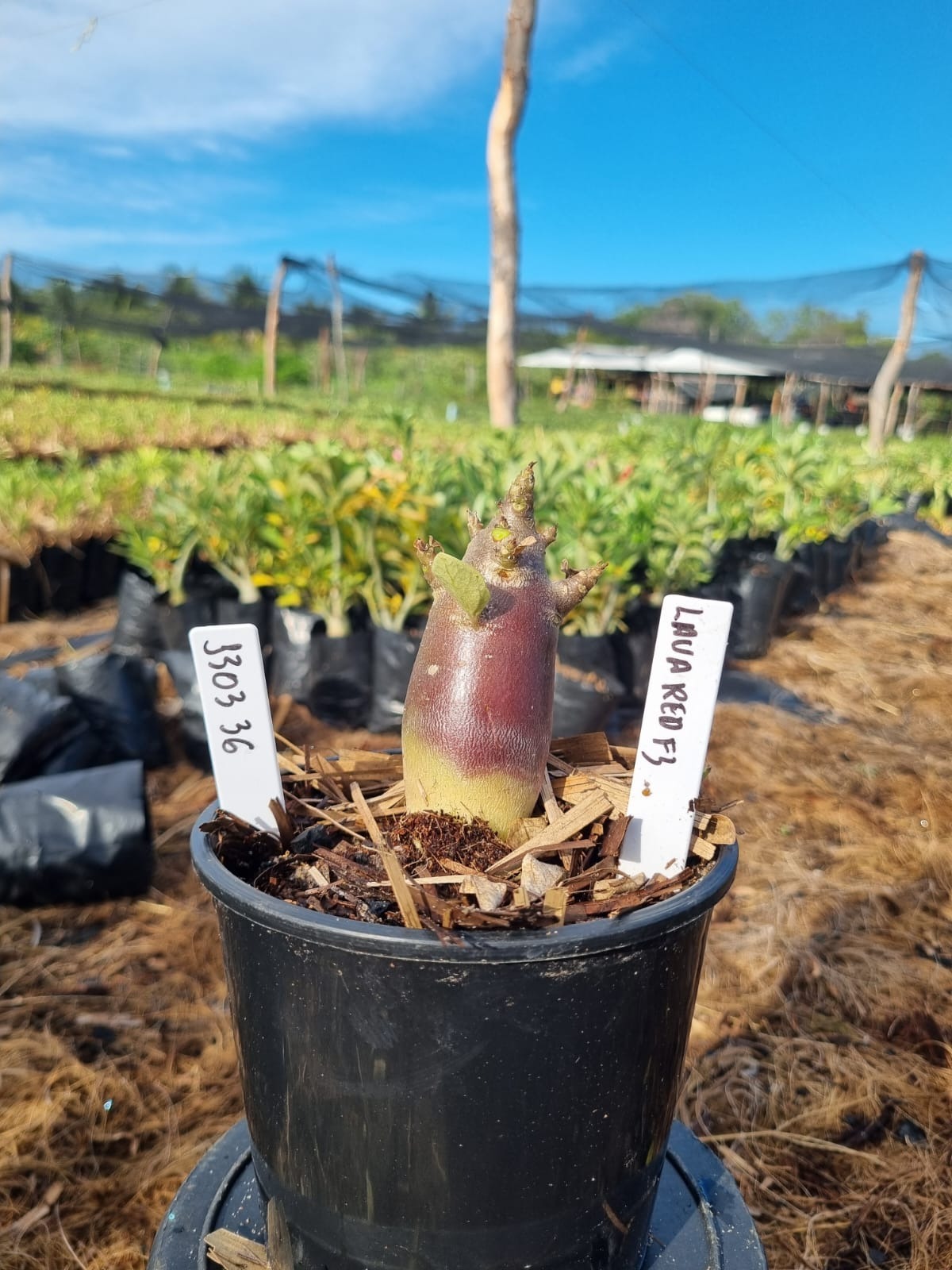 Adenium arabicum F3 cultivar lava Red f3 — semente selecionada, rosa do deserto com caudex imponente para colecionadores.