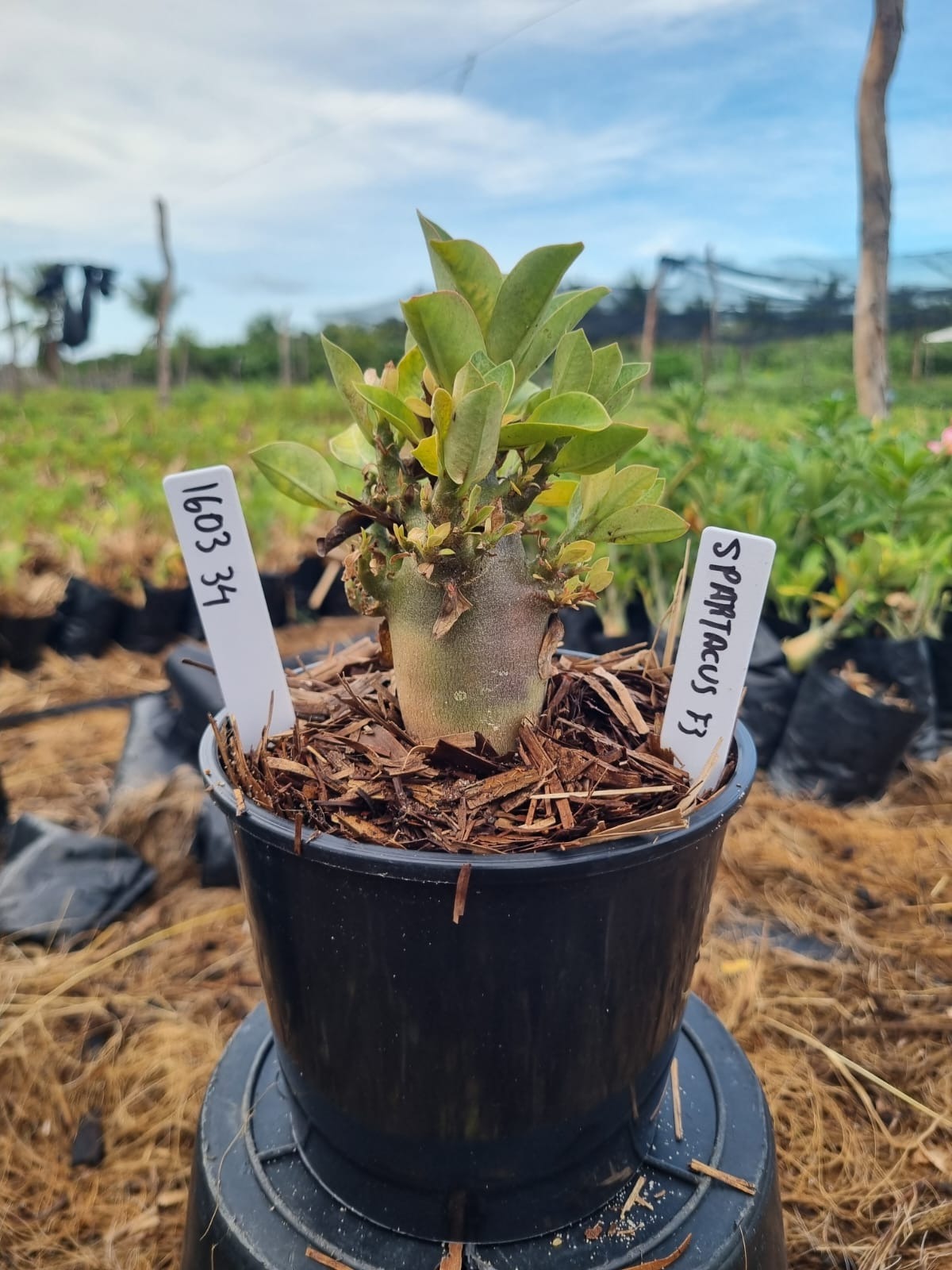 Adenium arabicum F3 cultivar Spartacus F3 — semente selecionada, rosa do deserto com caudex imponente para colecionadores.