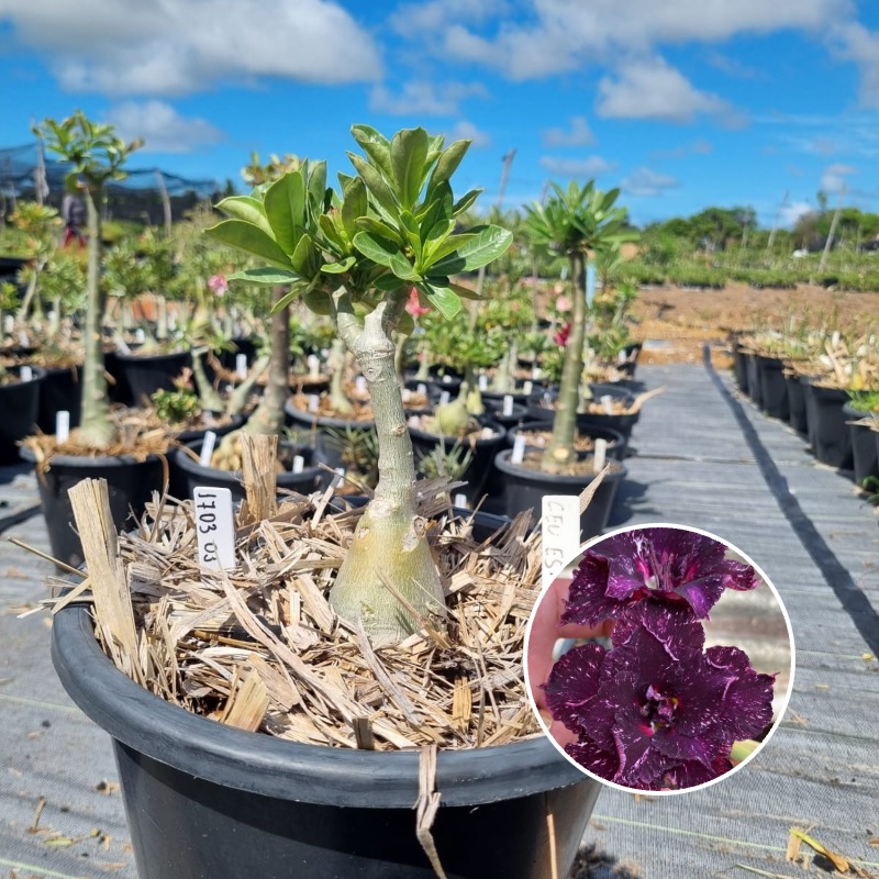 Muda Baobá Baby com caudex em formação do adenium rosa do deserto cultivar Céu Estrelado, perfeita para colecionadores apaixonados!
