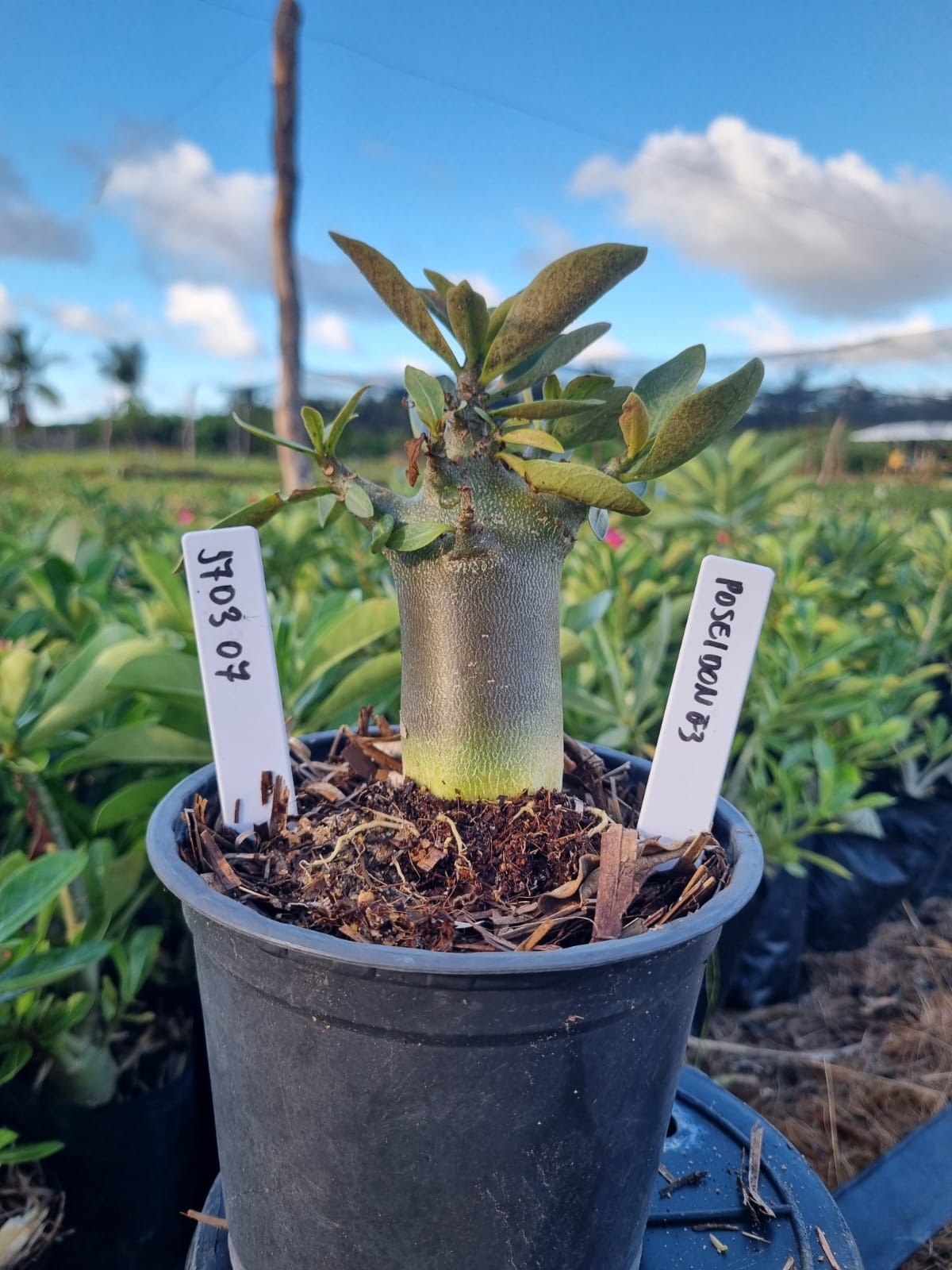 Adenium arabicum F3 cultivar Poseidon — semente selecionada, rosa do deserto com caudex imponente para colecionadores.