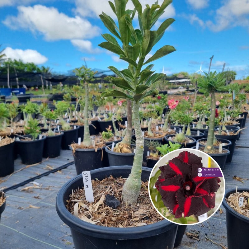 Muda Baobá Baby com caudex em formação do adenium rosa do deserto cultivar Estrela Negra, perfeita para colecionadores apaixonados!