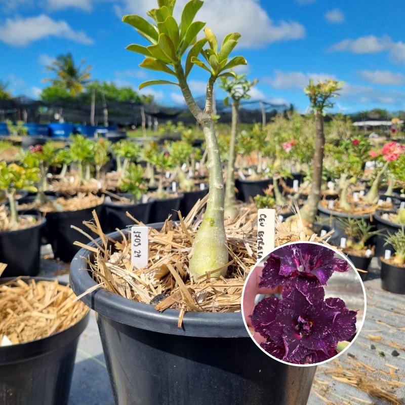 Muda Baobá Baby com caudex em formação do adenium rosa do deserto cultivar Céu Estrelado, perfeita para colecionadores apaixonados!