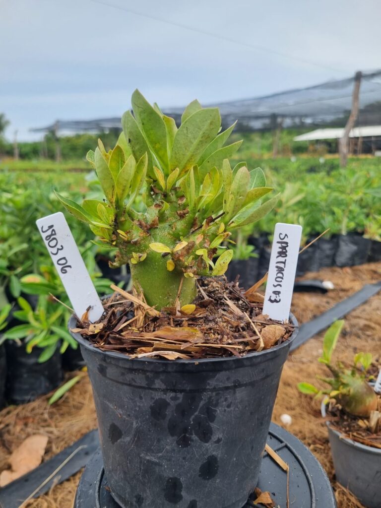 Adenium arabicum F3 cultivar Spartacus F3 — semente selecionada, rosa do deserto com caudex imponente para colecionadores.