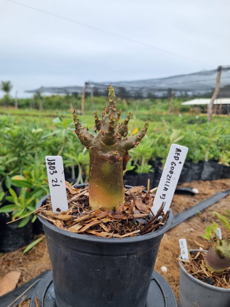 Adenium arabicum F3 cultivar Godzilla Red f3 — semente selecionada, rosa do deserto com caudex imponente para colecionadores.