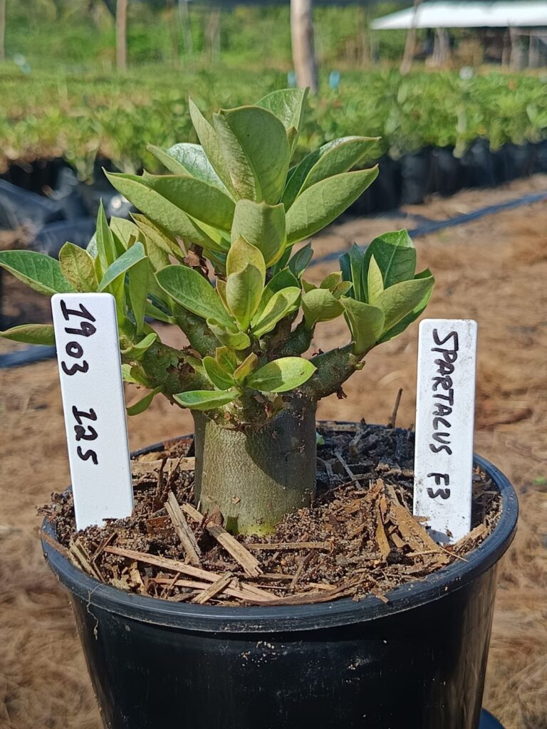 Adenium arabicum F3 cultivar Spartacus F3 — semente selecionada, rosa do deserto com caudex imponente para colecionadores.