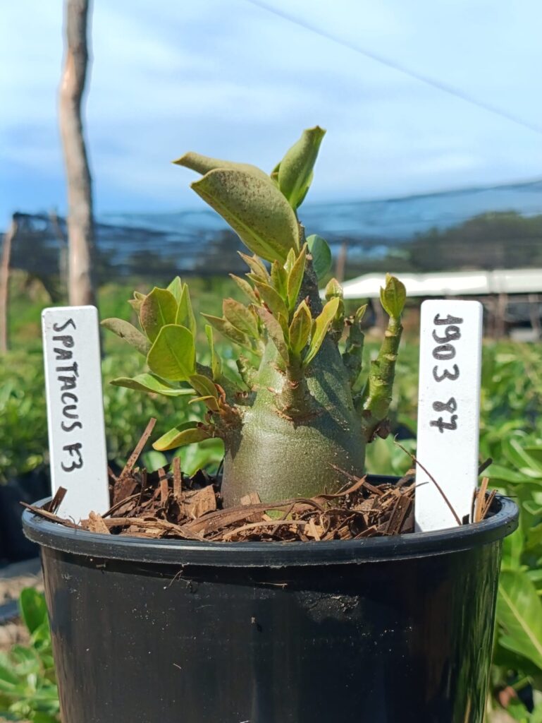 Adenium arabicum F3 cultivar Spartacus F3 — semente selecionada, rosa do deserto com caudex imponente para colecionadores.