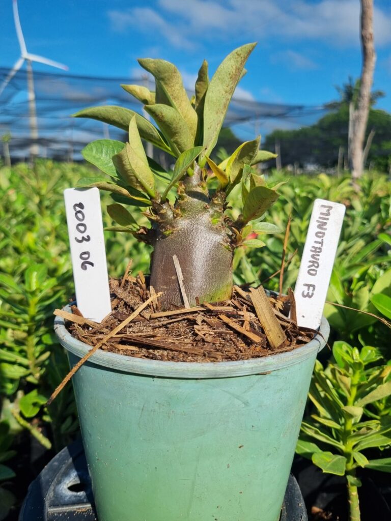 Adenium arabicum F3 cultivar Minotauro f3 — semente selecionada, rosa do deserto com caudex imponente para colecionadores.