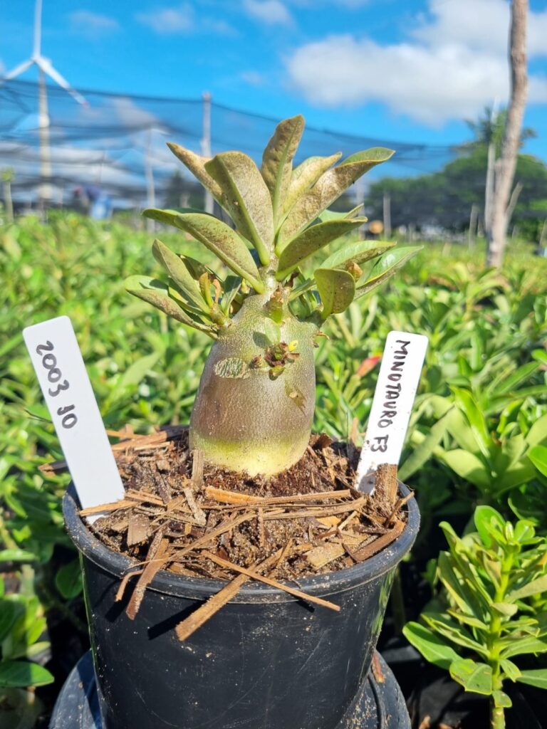 Adenium arabicum F3 cultivar Minotauro f3 — semente selecionada, rosa do deserto com caudex imponente para colecionadores.