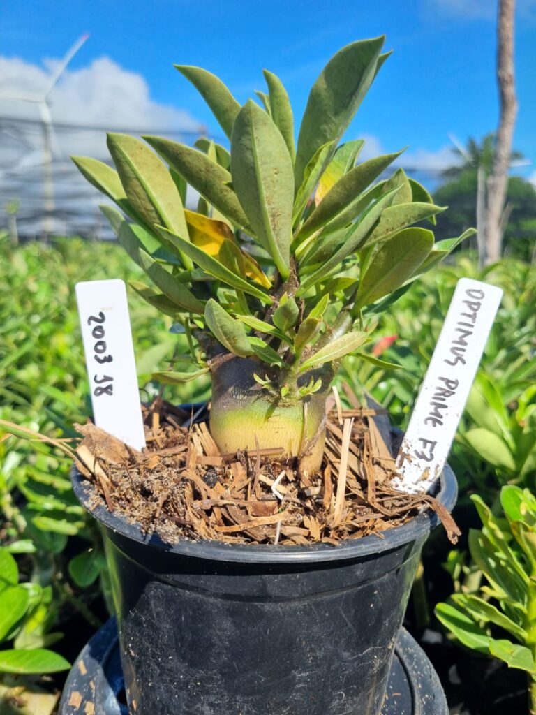 Adenium arabicum F3 cultivar Optimus Prime — semente selecionada, rosa do deserto com caudex imponente para colecionadores.
