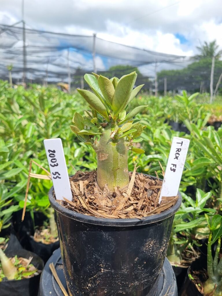 Adenium arabicum F3 cultivar T Rex — semente selecionada, rosa do deserto com caudex imponente para colecionadores.