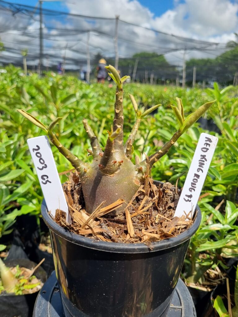 Adenium arabicum F3 cultivar Red King Kong — semente selecionada, rosa do deserto com caudex imponente para colecionadores.