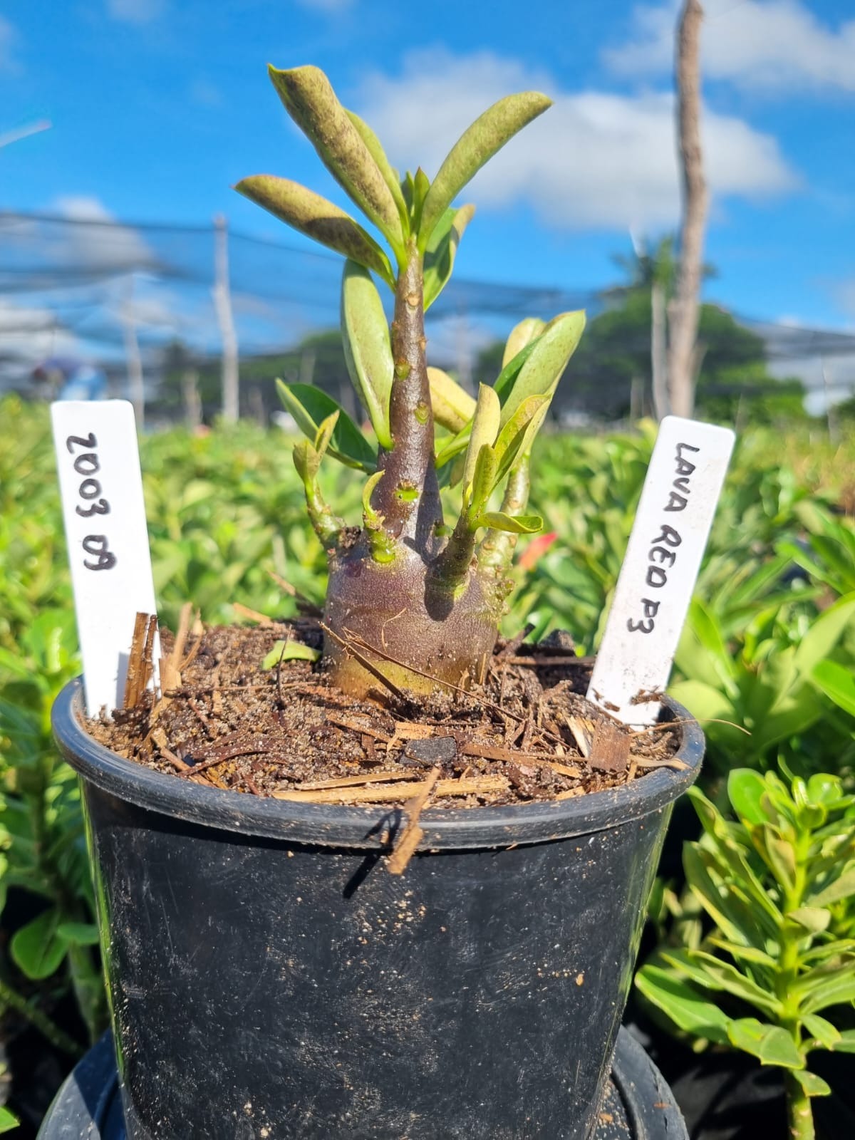 Adenium arabicum F3 cultivar lava Red f3 — semente selecionada, rosa do deserto com caudex imponente para colecionadores.
