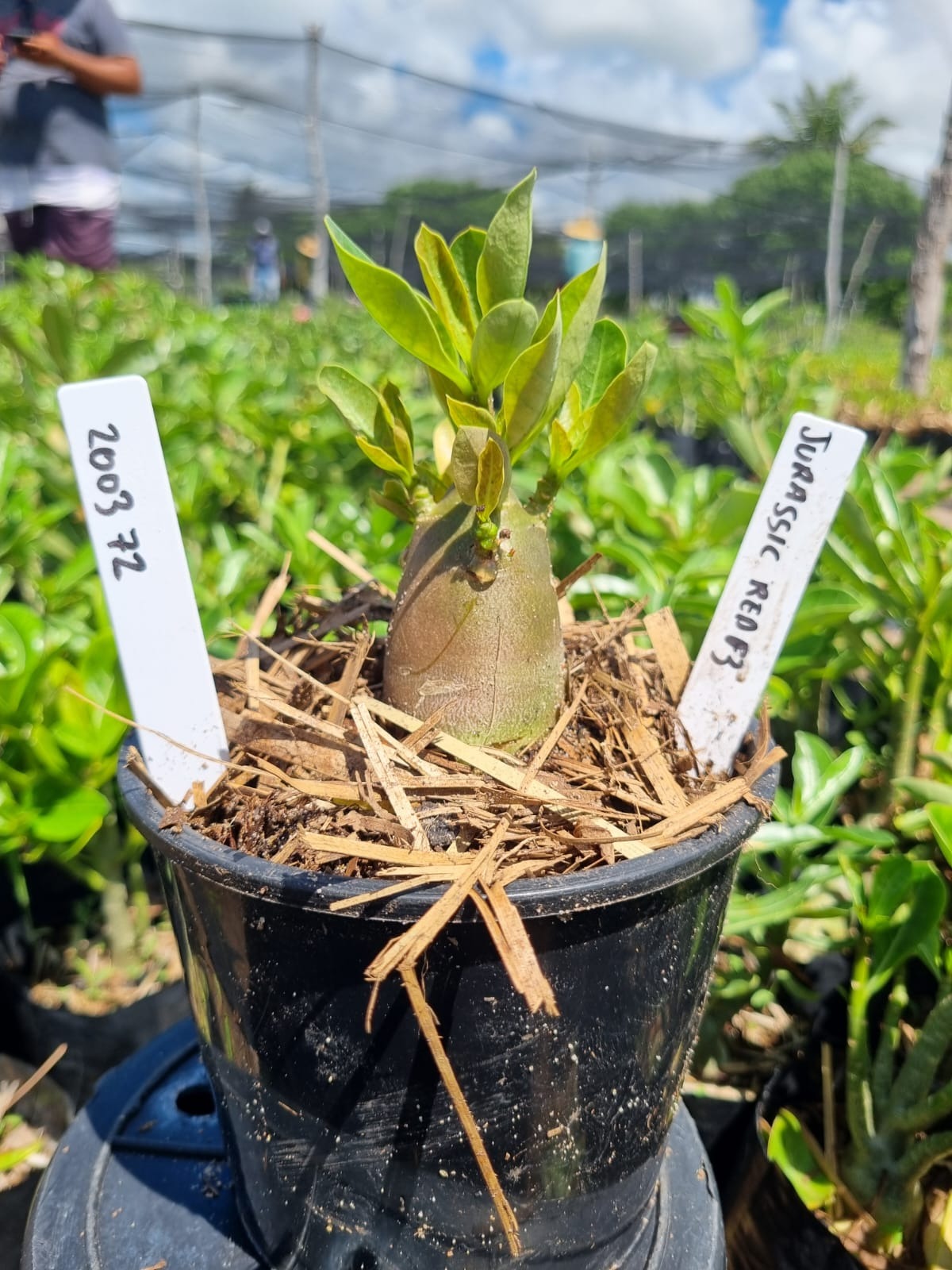 Adenium arabicum F3 cultivar Jurassic — semente selecionada, rosa do deserto com caudex imponente para colecionadores.