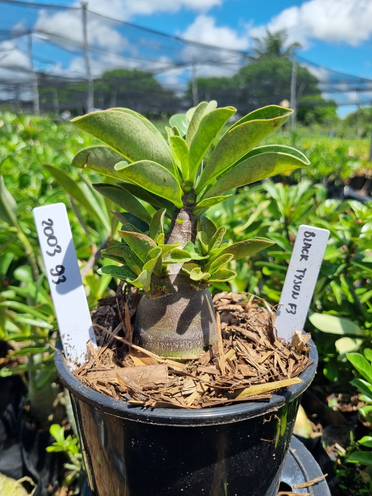 Adenium arabicum F3 cultivar Black tyson — semente selecionada, rosa do deserto com caudex imponente para colecionadores.