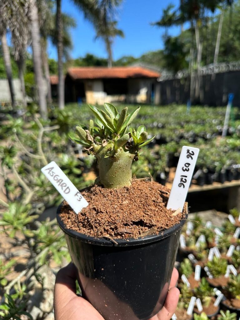 Adenium arabicum F3 cultivar Asgard — semente selecionada, rosa do deserto com caudex imponente para colecionadores.