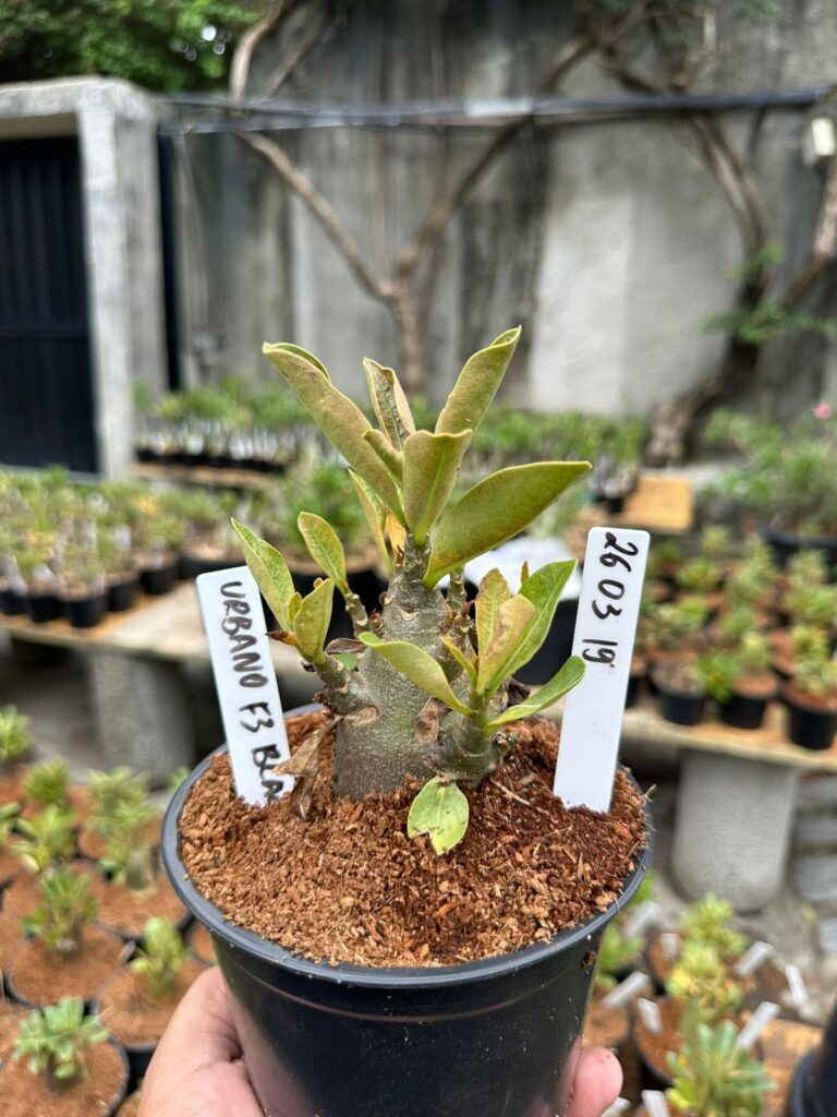 Adenium arabicum F3 cultivar URBANO F3 BLA — semente selecionada, rosa do deserto com caudex imponente para colecionadores.