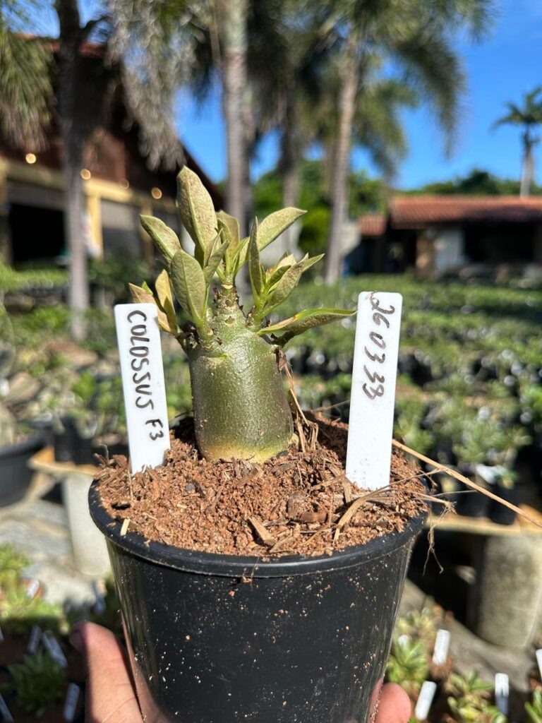 Adenium arabicum F3 cultivar Colossus — semente selecionada, rosa do deserto com caudex imponente para colecionadores.