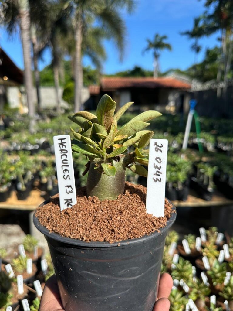 Adenium arabicum F3 cultivar Hércules Red f3 — semente selecionada, rosa do deserto com caudex imponente para colecionadores.