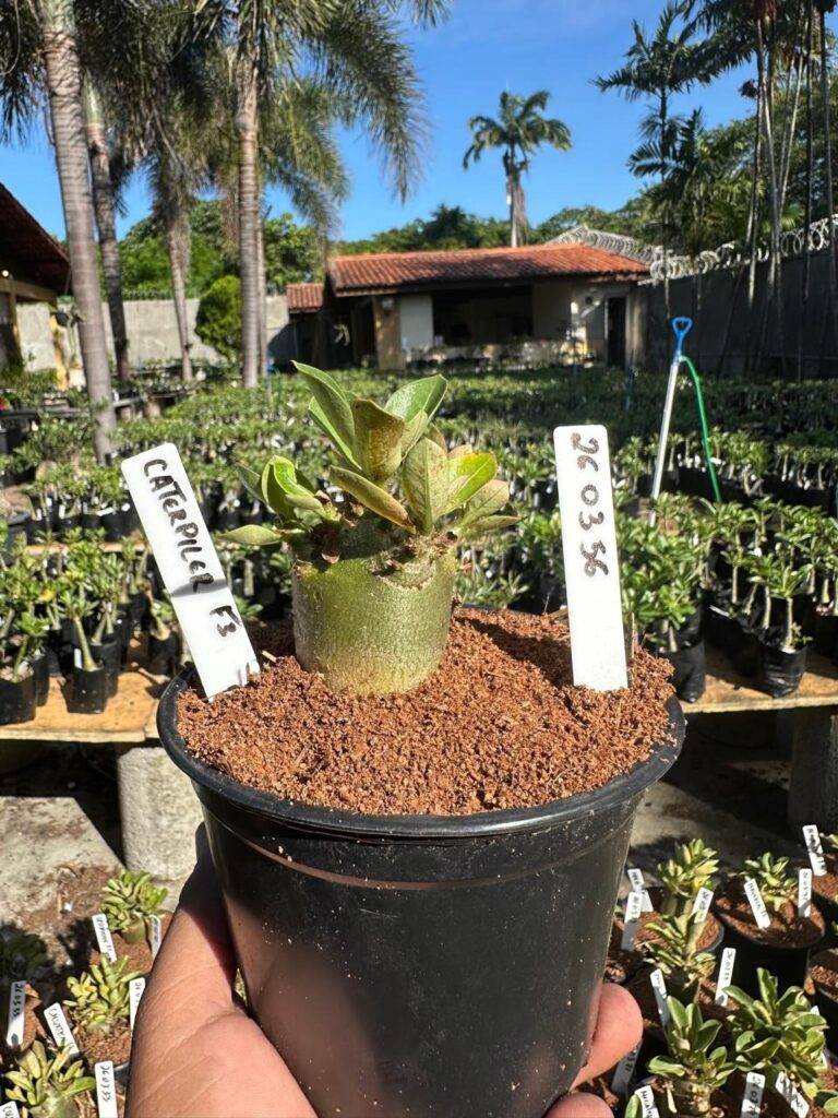 Adenium arabicum F3 cultivar Red Caterpillar — semente selecionada, rosa do deserto com caudex imponente para colecionadores.
