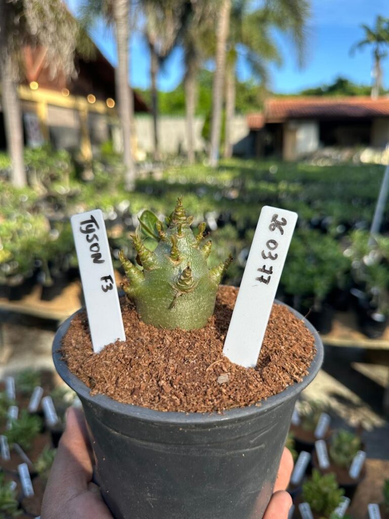 Adenium arabicum F3 cultivar Tyson — semente selecionada, rosa do deserto com caudex imponente para colecionadores.