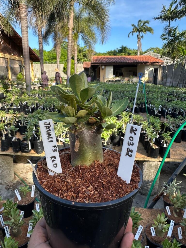 Adenium arabicum F3 cultivar Javali Red f3 — semente selecionada, rosa do deserto com caudex imponente para colecionadores.